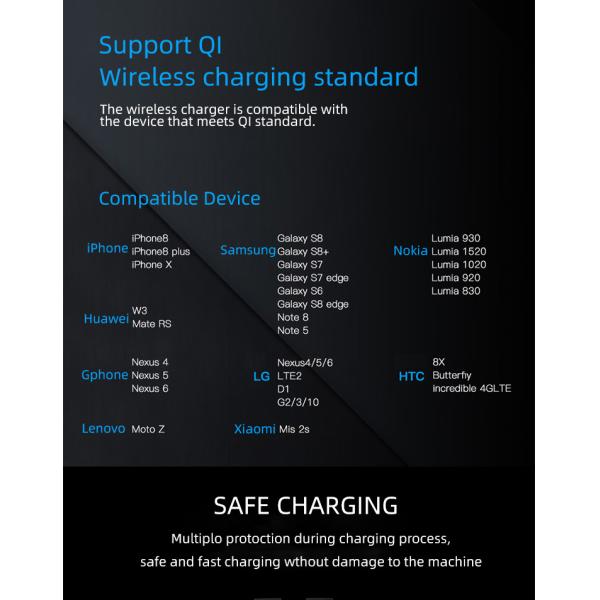 Qi standard is universal, suitable for iPhone 8 XR XS MAX for Samsung S9 S8 Huawei Mate20Pro and other mobile phones.